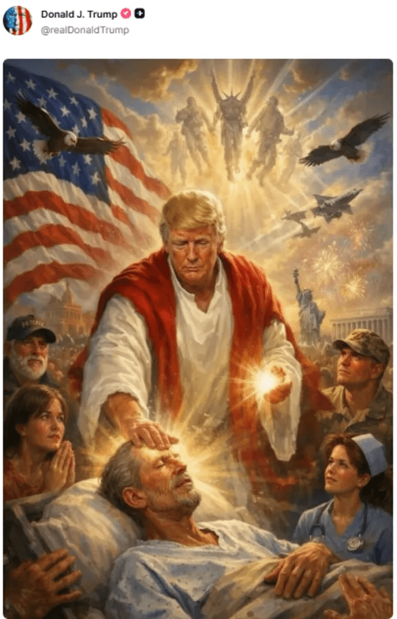 President Trump created controversy earlier this month when he posted a long message to Pope Leo and shortly after posted an image of himself dressed as Jesus Christ. The backlash to the Ai image was immediate and came from Christians of multiple denominations, resulting in the posts removal the same day it was posted. Trump has since claimed that the image was attempting to depict him as a Red-Cross doctor giving medical aid, despite a lack of the famous red-cross itself. Instead, the image depicts Trump wearing robes commonly seen on Jesus, with rays of light emanating from his hands as one is placed on a sick man’s head.